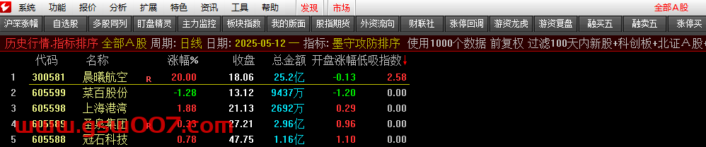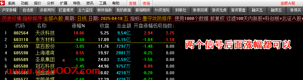 右键点击 “更改排序指标” 选择竞价低吸指标,并按指定参数设置;再通过 “范围过滤” 勾选科创、北证、ST 板块,并过滤 100 天内新股。完成首次设置后,后续仅需在集合竞价结束后右键刷新,按 “低吸指数” 从高到低排序,选取前两个信号标的操作。操作要点:手机端与电脑端筛选结果一致,操作时务必依据不同终端特性,正确使用对应指标,精准把握交易机会。四、数据下载要求