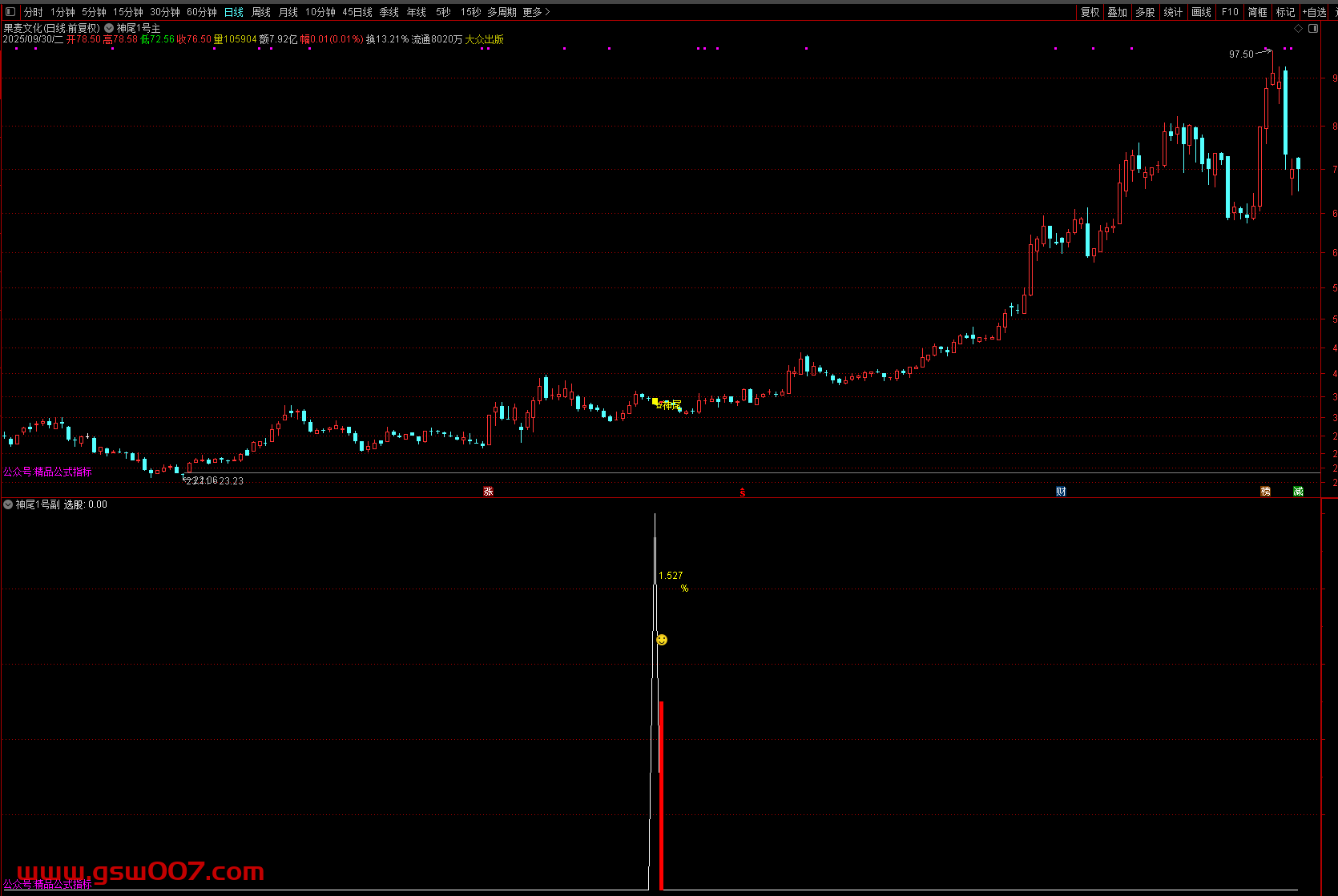 其显著特点在于信号的稀缺性与高质量 —— 今年以来累计信号仅 63 只,拒绝冗余信号干扰。经实测验证,采用 “当日收盘价买入、次日最高价卖出” 的操作模式,最近一年胜率高达 96.36%,为超短线交易提供高概率参考。